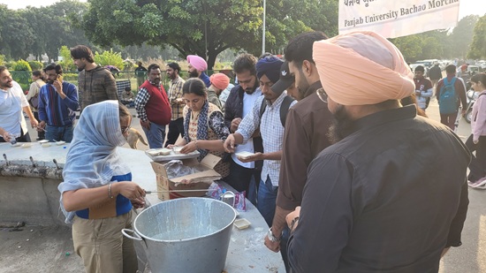 Chandigarh, November 18, 2025: The ongoing Panjab University Bachao Morcha, which is demanding the announcement of the Senate election schedule, has taken on the character of a mini Kisan Morcha with its vibrant langar sewa.