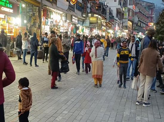 Mall Road in Manali is already full of life. Tourists can be seen enjoying walks with their families on Mall Road and at Atal Chowk from early morning. Local people are hopeful that the tourist rush will help boost work and income during the holiday season. (ANI)