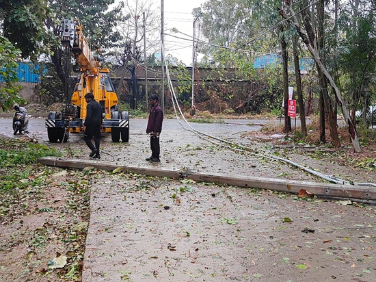As per information, trees collapsed at several locations onto electricity poles and transmission lines, resulting in fallen poles, snapped conductors, and widespread disruption of power supply.