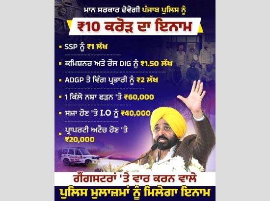 Punjab Govt approves Rs 10 crore reward policy for police, launches anti-gangster helpline