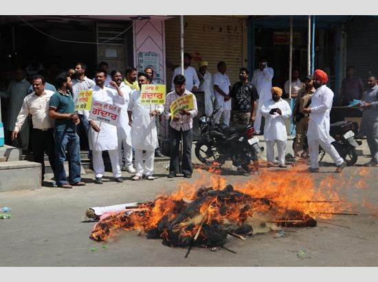 AAP burns effigies of defecting MPs, calls switch to BJP ‘Betrayal of Punjab’