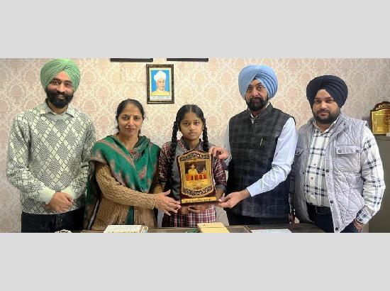 Pawanpreet Kaur was honoured by Lok Sabha Speaker Om Birla in New Delhi for her outstanding performance. On Saturday, she, along with her guide teacher Sumitpal Singh Sodhi (Science Master), was felicitated by District Education Officer Mrs Muneela Arora and Deputy District Education Officer Dr Satinder Singh at a special ceremony held in Ferozepur.