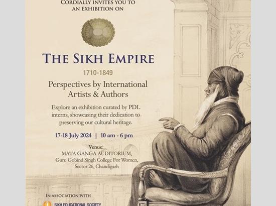Chandigarh, July 14, 2024: The Punjab Digital Library is organizing an exhibition on 'The Sikh Empire 1710-1849 Perspectives by International Artisits and Authors' on July 17, 18 from 10 am to 6 pm at Mata Ganga Auditorium, Guru Gobind Singh College for Women, Sector 26 in Chandigarh,