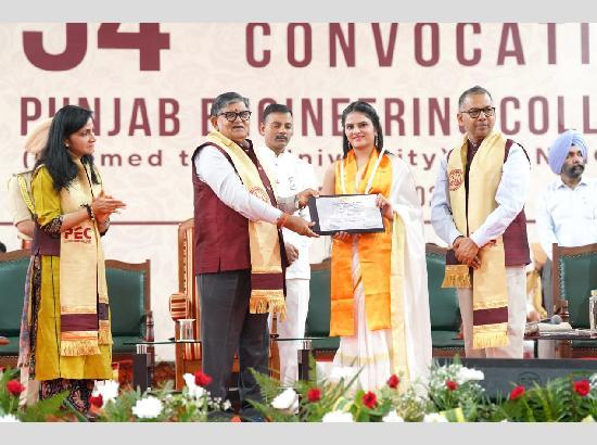 Chandigarh, 19th October2024 The Governor of Punjab and Administrator UT Chandigarh, Sh. Gulab Chand Kataria, graced the 54th Convocation Ceremony of Punjab Engineering College (PEC) today. Addressing the gathering, he expressed his immense pleasure in being a part of this prestigious occasion, noting that the Convocation marks a significant milestone for every educational institution.