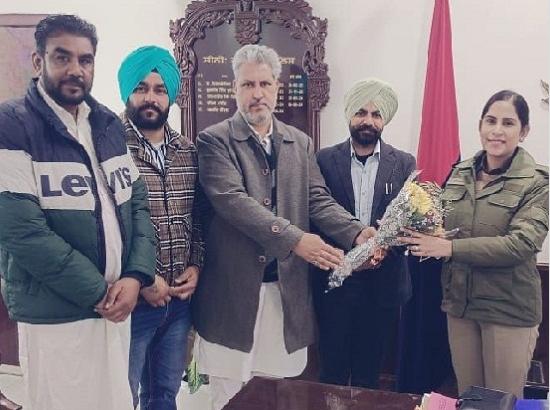 A delegation of notable AAP leaders, including Paramjit Singh Dhillon Kotfatta, Chairman of the District Cooperative Agricultural Development Bank in Bathinda, Advocate Hardeep Singh Sran, Chairman of the District Planning Committee Bathinda, and Shaminder Singh Pathrala, Block President of Bathinda Rural, along with Hartej Singh Bhullar, met with Dr. Jyoti Yadav Bains, the newly appointed SSP of Bathinda. They warmly welcomed her at the Minnie Secretariat.