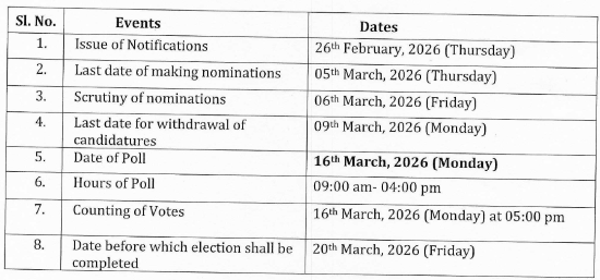 Chandigarh, February 18, 2026: Election for 2 Rajya Sabha seats in Haryana will take place on March 16, 2026.