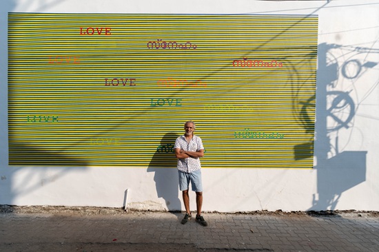 “Since 2010, with a project, FlyEye and EyePod, I have been attempting to create sites for shared environments to make poetics of contemporary art accessible. The Wall of Love is a subtle invitation to view the simple yet charged words from afar and intimately and see its meanings transform,” he said.