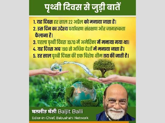 Baljit Balli, Editor-in-Chief, of Babushahi Network said that Earth Day is not just an event; it's a movement. A call for unity, awareness, and action—so that we, and future generations, can live in harmony with nature.