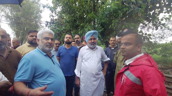 Cabinet Minister Sh. Sanjeev Arora visited Sutlej river Dhussi Bandh near Sasrali Colony and took stock of the situation and issued necessary directions. Apart from this, Cabinet Minister for Rural Development and Panchayats, Labour and Tourism and Cultural Affairs, S. Tarunpreet Singh Sond visited the Gab bridge in Khanna and inspected the water drainage.